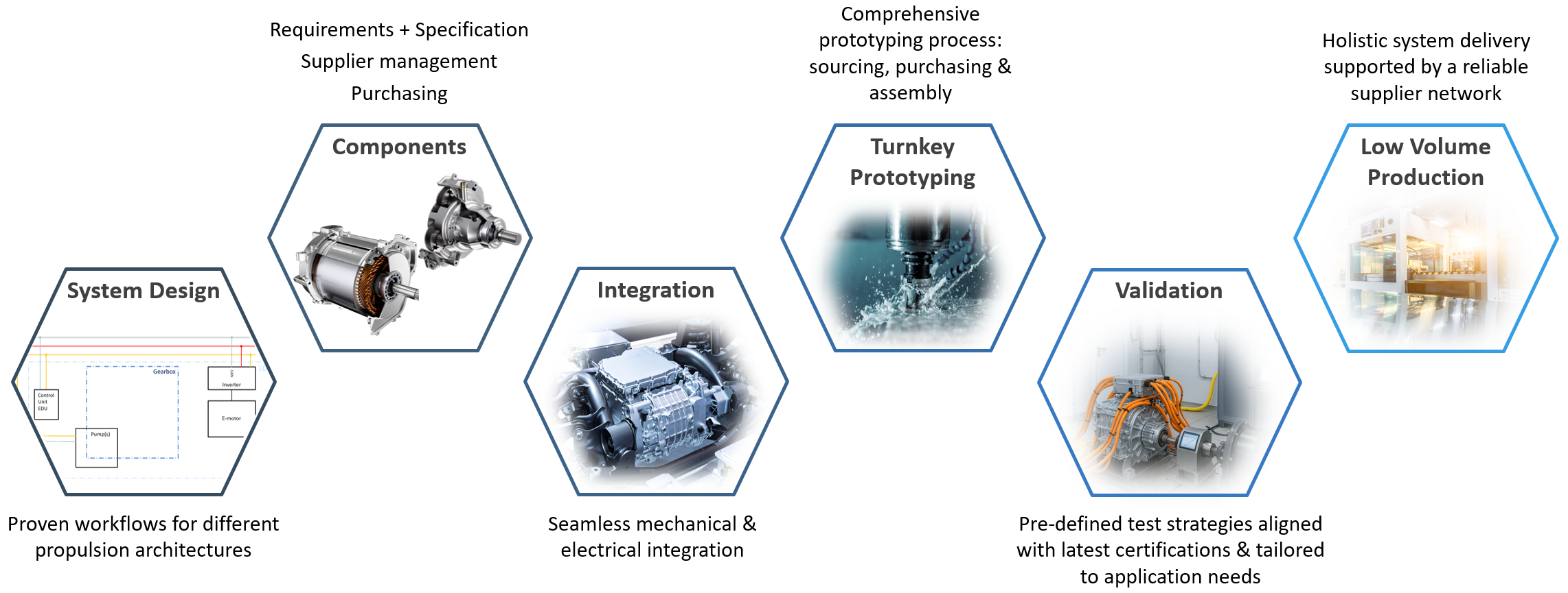 As your one-stop solution partner, we develop and integrate drive systems - from initial concept to the functional products, as a prototype or small series. Drawing on cross-industry experience and extensive in-house expertise, we offer end-to-end production-ready designs that are tailored to your specific application and requirements.