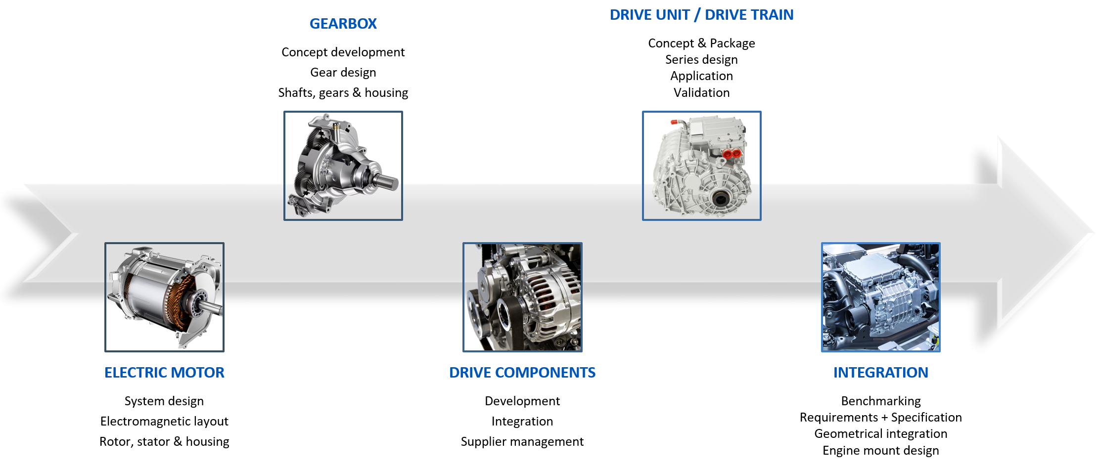 Our expertise in powertrain development covers everything from high-performance electric motors and precision gearboxes to auxiliary drives and complete drive units. We develop and integrate your tailored drive system that powers the future of mobility.