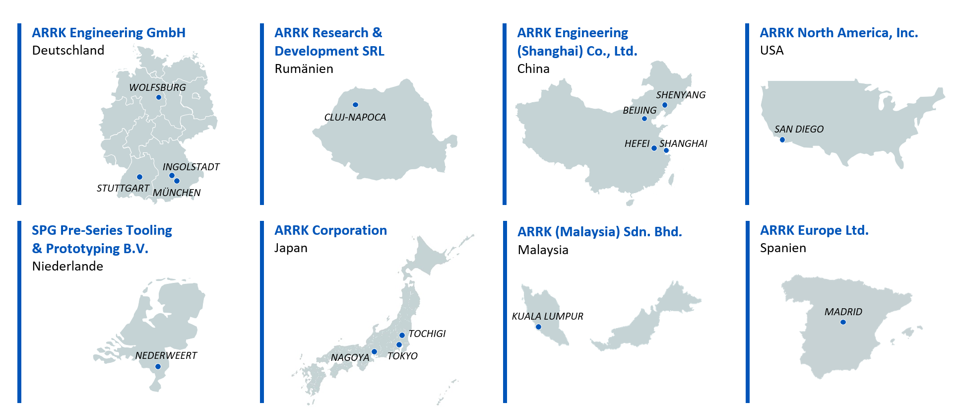 Die Basis für diesen Erfolg ist die langjährige, interdisziplinäre Expertise der 1.800 Mitarbeiter an Standorten in Deutschland, Rumänien, Spanien, den Niederlanden, Malaysia, den USA, Japan und China sowie die Zusammenarbeit innerhalb des internationalen ARRK Konzerns.
